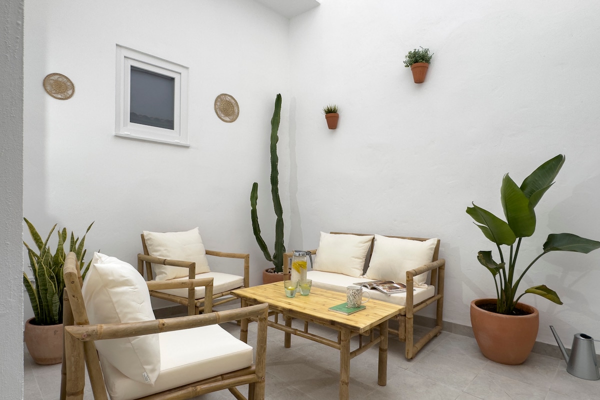 Das Loft befindet sich im Herzen des maritimen Viertels von Valencia, El Cabanyal, 5 Minuten vom Strand Malvarosa entfernt. Das Haus wurde im Jahr 1900 gebaut und komplett renoviert, ohne seine Essenz zu verlieren. Diese atemberaubende Wohnung verbindet traditionelle Architektur mit schickem Boho-Design in einer natürlichen, strukturierten Umgebung. Schau dir die hohen gewölbten Holzbalkendecken und freiliegenden Ziegelwände an, während du im Marmorküchenbereich speist und dich in der geräumigen Regendusche abkühlt.
