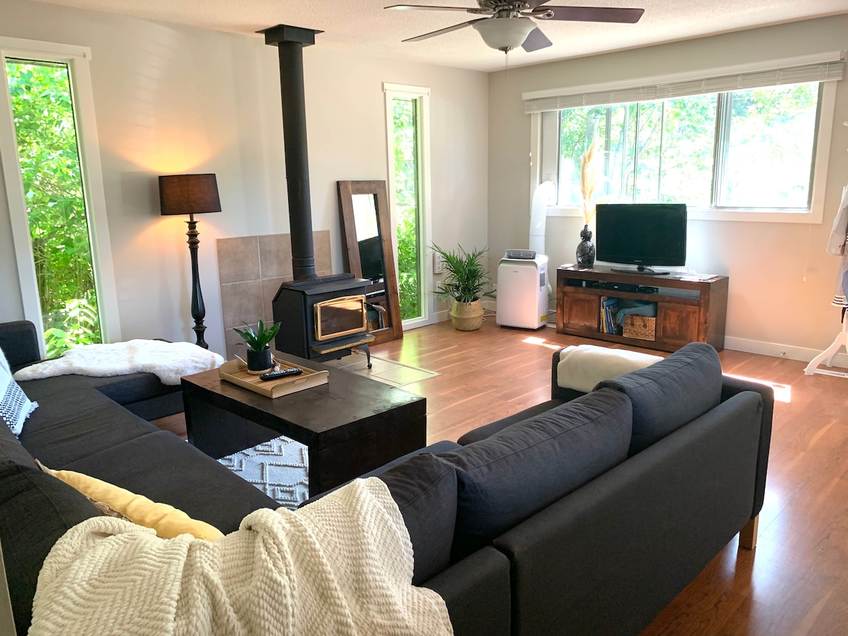 Willkommen in unserem Hideaway in Sylvan! Wir freuen uns, dass du in unserer gemütlichen Hütte übernachtest und dass sie ein zweites Zuhause für deinen Aufenthalt in Sylvan Lake ist! Wir befinden uns nur einen halben Block von einem ruhigen Strand entfernt, im ruhigen Cottage-Viertel. Spaziere den schönen Strip entlang zu Restaurants in der Innenstadt, Kinderparks, lokalen Geschäften und Brauereien oder verbringe den Tag am Strand und genieße ein entspannendes Paddeln. Unsere gemütliche Hütte verfügt über eine Feuerstelle, eine vordere und hintere Terrasse, einen großen Hof und einen Parkplatz.