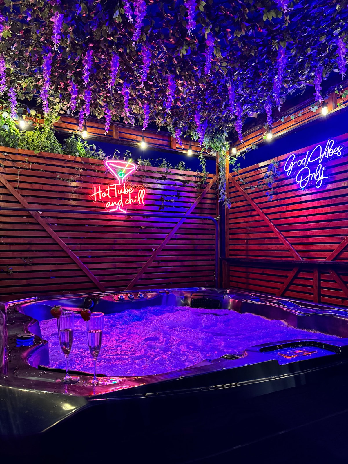 Luxusurlaub: privater Whirlpool mit Blick auf Meer und Wales