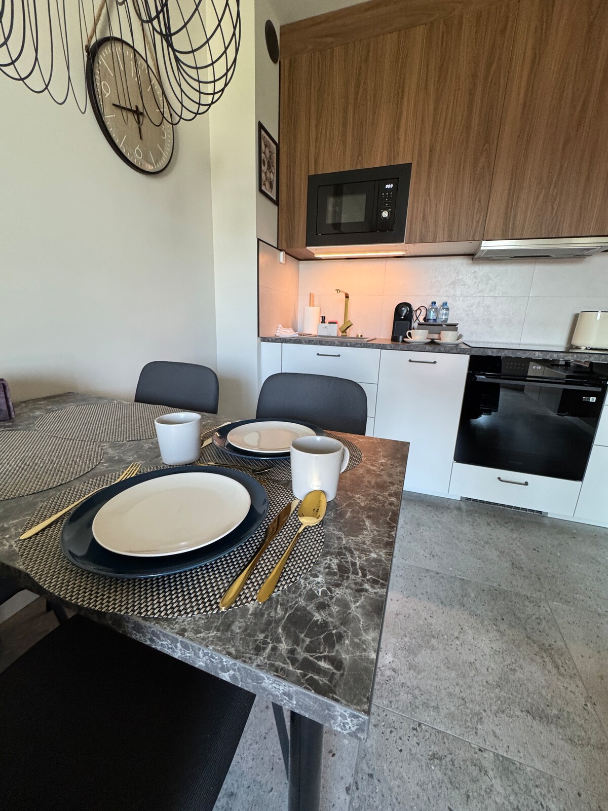 Enjoy a stylish experience at this centrally-located place. It's brand new Studio with everything you need around that location but with quite green view from the windows and the balcony. For you disposal there's fully equipped kitchen, modern bathroom with spacious shower, cozy little bedroom for two guest, comfortable sofa and also TV set available to watch from different angle around the main space. Great location allows you to enjoy the city with the best it can offer just by walk.