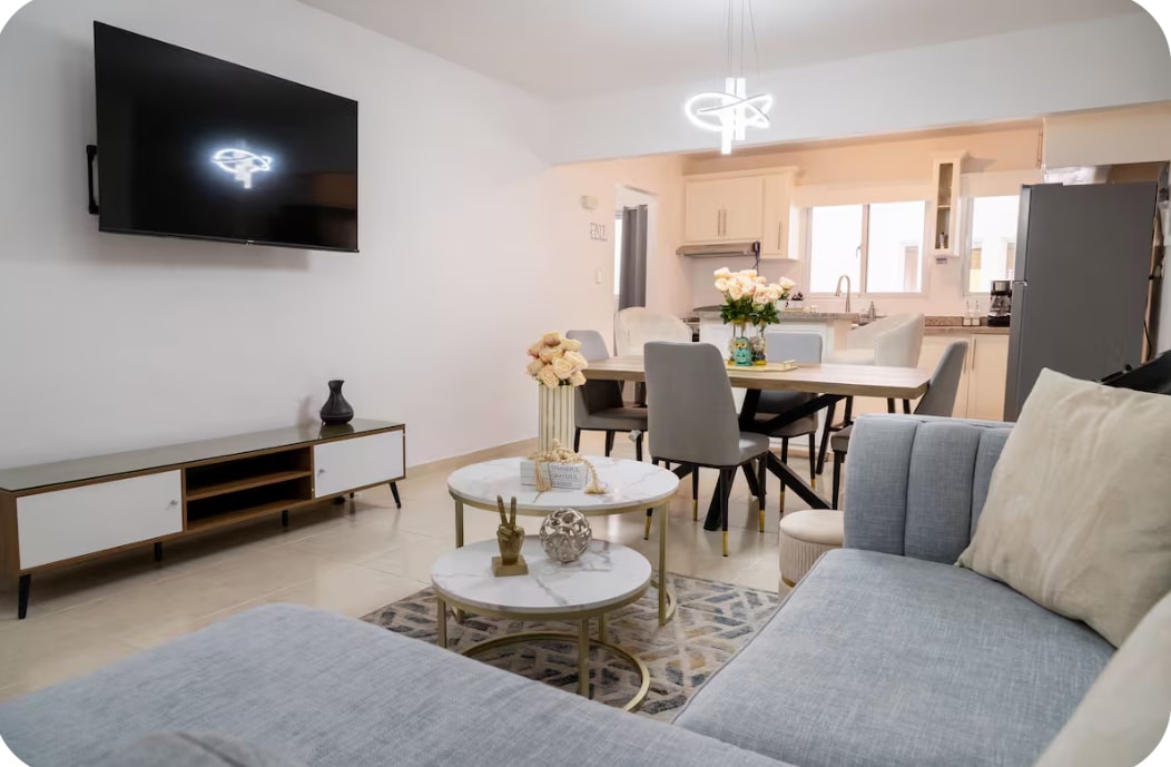 Brandneue 2-Zimmer-Wohnung mit allen Geräten und Möbeln. Platz für bis zu 4 Personen, mit 2 Queensize-Betten. Parkplatz für ein Fahrzeug. Reichlich nahe gelegene Annehmlichkeiten wie Parks, Strand, Innenstadt von Bani, Einkaufsmöglichkeiten, Nachtclubs und vieles mehr. Zwei-Zimmer-Wohnung mit allem, was dazugehört. Der Raum ist für 4 Personen mit zwei Schlafzimmern mit Queensize-Bett und Klimaanlage. Geschlossener Parkplatz für ein Auto. Bereiche zum Genießen wie Parks, Strand, das Zentrum von Bani, Geschäfte, Diskotheken und vieles mehr.
