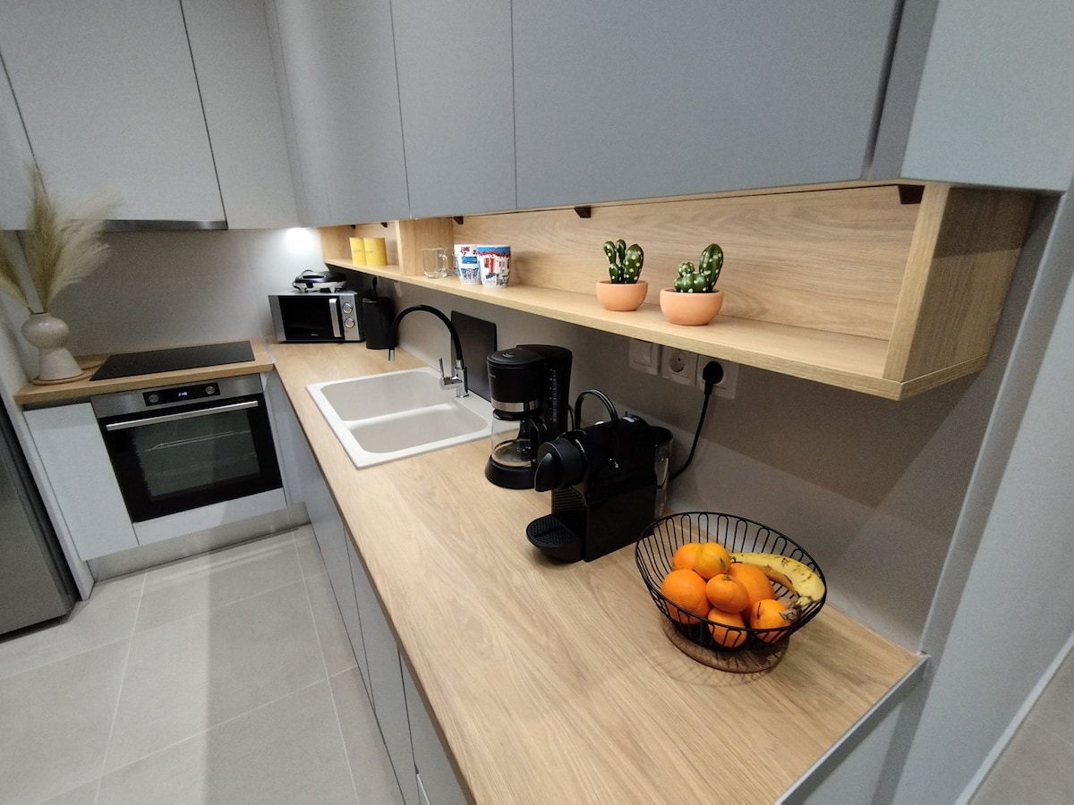 The apartment is located in the center of Piraeus and next to the port. Metro, airport connection, ferries, train, suburban train, bus station and tram all within 100 meters. Central location!! The apartment you are going to stay in is brand new and fully renovated with bedroom, kitchen, living room 69 square meters with high standards and designed by an excellent architect. Located on the 4th floor. It is comfortable and luxurious to make your stay unforgettable!
