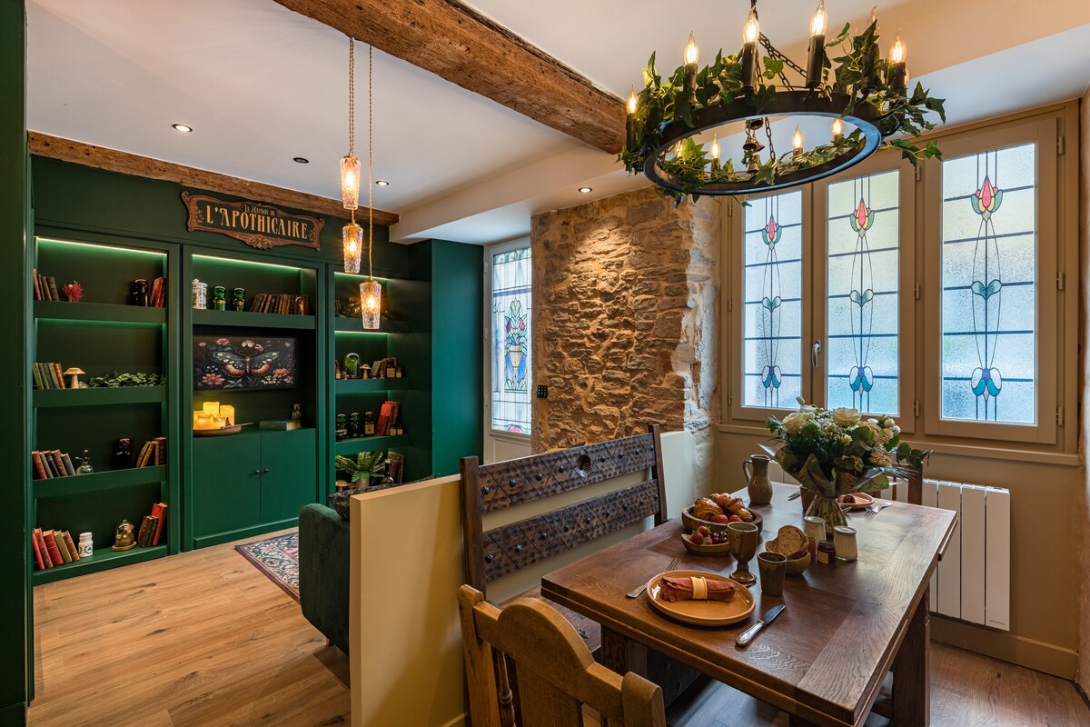 Ihr Bed and Breakfast ist als Duplex organisiert und besteht zum einen aus einem Schlafzimmer und einem angrenzenden Badezimmer und zum anderen aus einem Wohnzimmer mit Küche. Die Dekoration verbindet Tradition und Moderne, die ursprünglichen Stein- und Terrakotta-Böden reihen sich an die Gemälde eines zeitgenössischen Künstlers. Diese beiden Räume haben eine schöne Fläche von 40 m2, sie sind durch eine schöne schmiedeeiserne Wendeltreppe verbunden, die sehr schmal sein kann! Privater Parkplatz gegen Aufpreis.