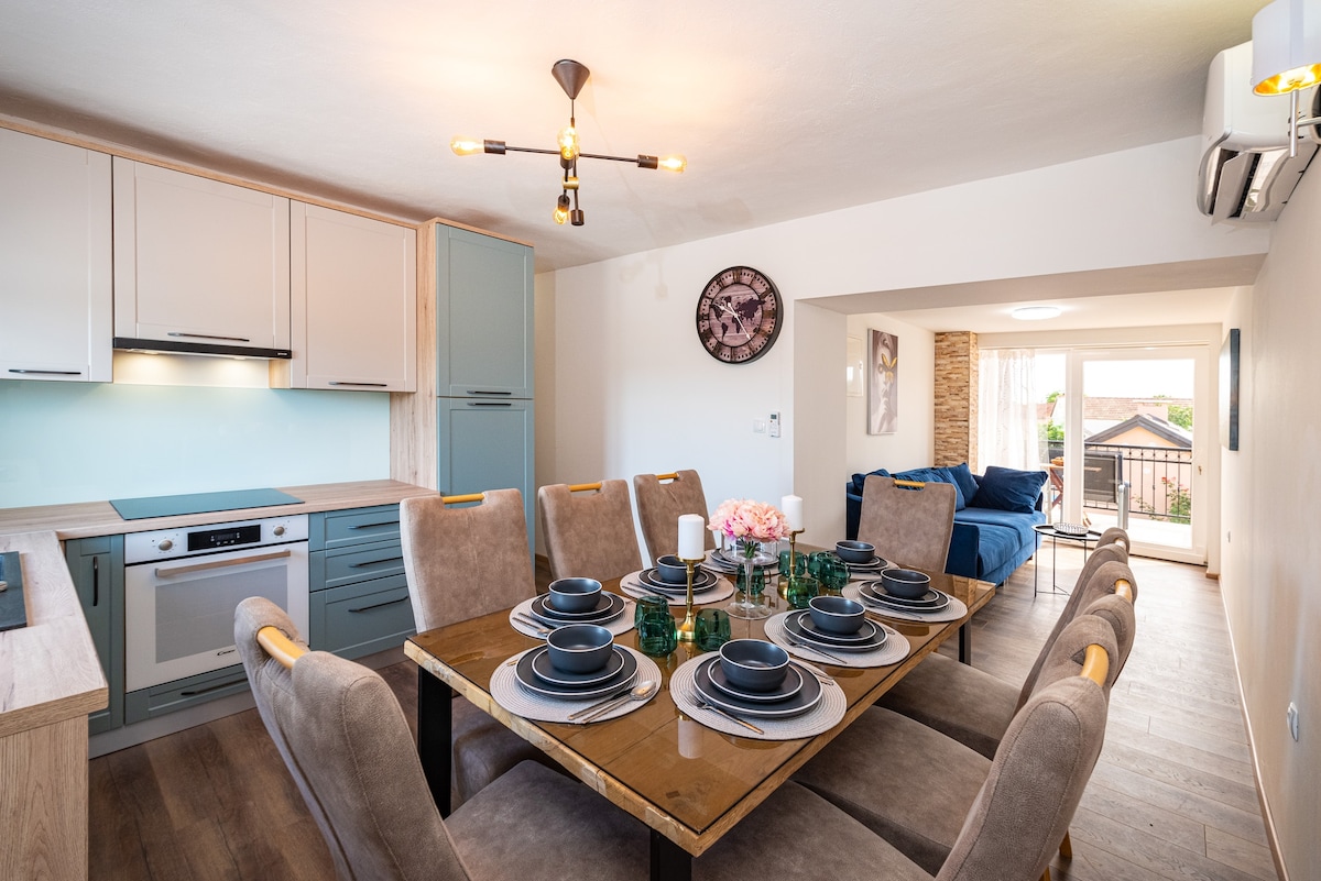 .This newly renovated Villa is located in a quiet location in the center of the town of Nin, close to the beach, restaurants and supermarkets. The house consists of three bedrooms, a living room with a dining room, a fully equipped kitchen, a summer kitchen with a toilet, a terrace and a private pool. All rooms are air-conditioned and one room has a private bathroom. Our guests have private parking, WiFi and barbecue. Our family wish you a pleasant stay.