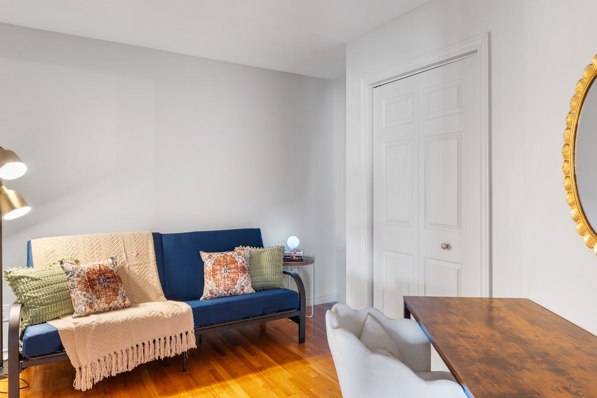 VERBREITE DIE NEUIGKEITEN!! Bleibe in Moncton, aber spüre die Atmosphäre von NYC. 🌆Diese schöne Wohnung mit 1 Schlafzimmer ist eine Hommage an New York City. Diese private Wohnung ist eine von zwei, die sich im 2. Stock in einem ruhigen Haus befindet. Ideal gelegen zwischen beiden Krankenhäusern, Minuten von der Innenstadt, der Universität und in der Nähe der wichtigsten Touristenattraktionen. Diese Nichtraucher-Wohnung ist mit allem ausgestattet, was du brauchst, von Toilettenartikeln, Handtüchern, Bettwäsche, Kochgeschirr, Geschirr, Keurig-Kaffeemaschine und vielem mehr. Du hast sogar dein eigenes kleines Deck.