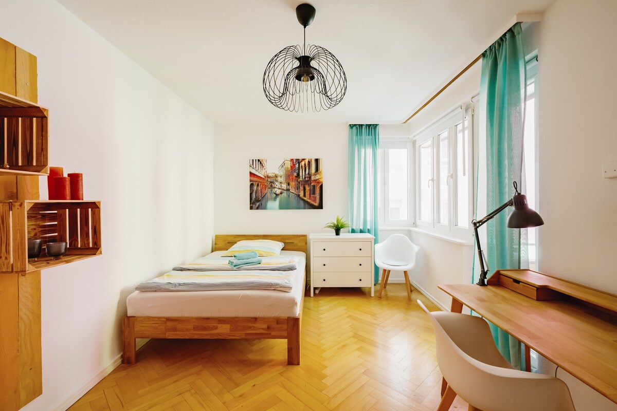 Unser modernes und stilvoll eingerichtetes Studio Apartment verfügt über alles, was du für einen angenehmen Aufenthalt benötigst: • Balkon mit Sitzgelegenheit • Bett (100x200 / H3) • Smart TV mit Netflix (kein Kabel TV) • NESPRESSO Kaffeemaschine und Teebar • Voll ausgestattete Küche • Arbeitstisch mit Stuhl • Waschmaschine und Trockner (Münzmaschine im Haus) • Bettwäsche, Handtücher und Shampoo inkl. • Zentrale Lage
