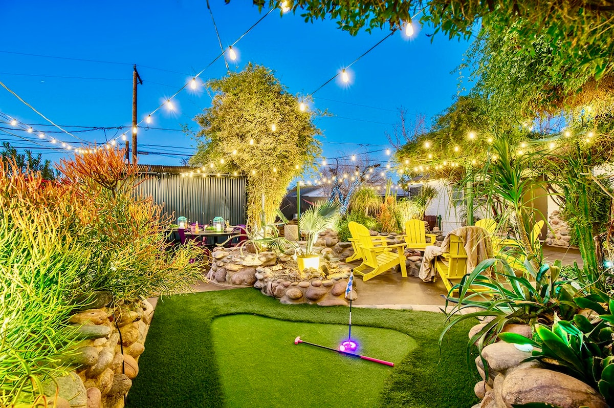Genieße das herrliche Ambiente dieser Lifestyle-Residenz in Glendale, die eine moderne organische Atmosphäre und einen faszinierenden Garten im Resort-Stil bietet. Verbringe den Tag mit Golf, Wandern oder einem Spiel in den State Farm oder Camelback Stadien und kehre für ein entspannendes Bad im beheizten, funkelnden Pool zurück. Zünde den Grill an und serviere das Abendessen auf der Terrasse! Fordere Freunde zu einer Partie Golf auf dem gepflegten, professionellen Putting-Green heraus, spiele eine Partie Cornhole oder Tischtennis! Die Unterhaltungsmöglichkeiten sind endlos!