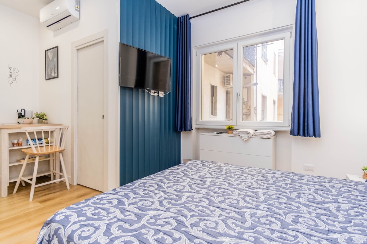 Unser Chiaia Mini-Apartment Nummer 1 verfügt über ein privates Badezimmer, einen komfortablen Arbeitsbereich und wurde mit einem Sommier-Super-Kingsize-Bett cm180x210x27 in Memory-Schaum und orthopädisch sowie einem Schlafsofa mit einer sehr komfortablen Matratzenhöhe von 25 cm ausgestattet. Bei Buchungen bis zu zwei Personen ist der Preis der gleiche wie für eine Person, wir bitten nur um einen kleinen Preisunterschied für den dritten Gast