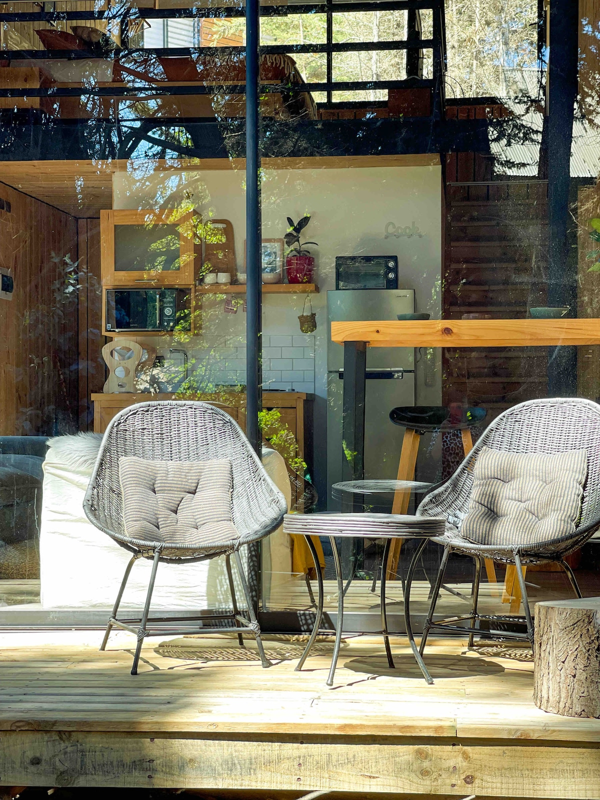 Holzhütte mit Whirlpool und Starlink, mit Blick auf die Lagune Cáhuil und den einheimischen Wald. Abgeschieden für Ruhe, aber in der Nähe von Stränden, Sehenswürdigkeiten, Restaurants und Geschäften für alles Wesentliche. Verfügt über sonnige Terrassen, Skate-Rampe, Feuerstelle und Gas-/Holzgrills. Volles Mobilfunksignal und schnelles WLAN machen es zum perfekten Natururlaub.