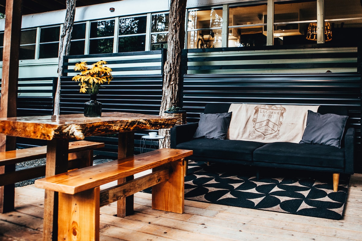 Fahre an unserem Bauernhof vorbei, umgeben von Bäumen und Wildtieren. In diesem wunderschön kürzlich umgebauten Schulbus wartet ein Abenteuer auf dich. Erlebe, wie es ist, in einem winzigen Haus mit allen Annehmlichkeiten zu leben. Hole dir frische Eier von den Hühnern, setz dich auf die Veranda, röste S'mores, leg dich in die Hängematte, spiele Spiele, dusche dich mit der Natur um dich herum und ruhe dich einfach aus und regeneriere dich. Das Hotel liegt 15 Minuten von der Innenstadt von Tacoma und 13 Minuten von der Puyallup Fair entfernt. Für weitere Bilder und Abenteuer folge uns unter #gloriatheskoolie