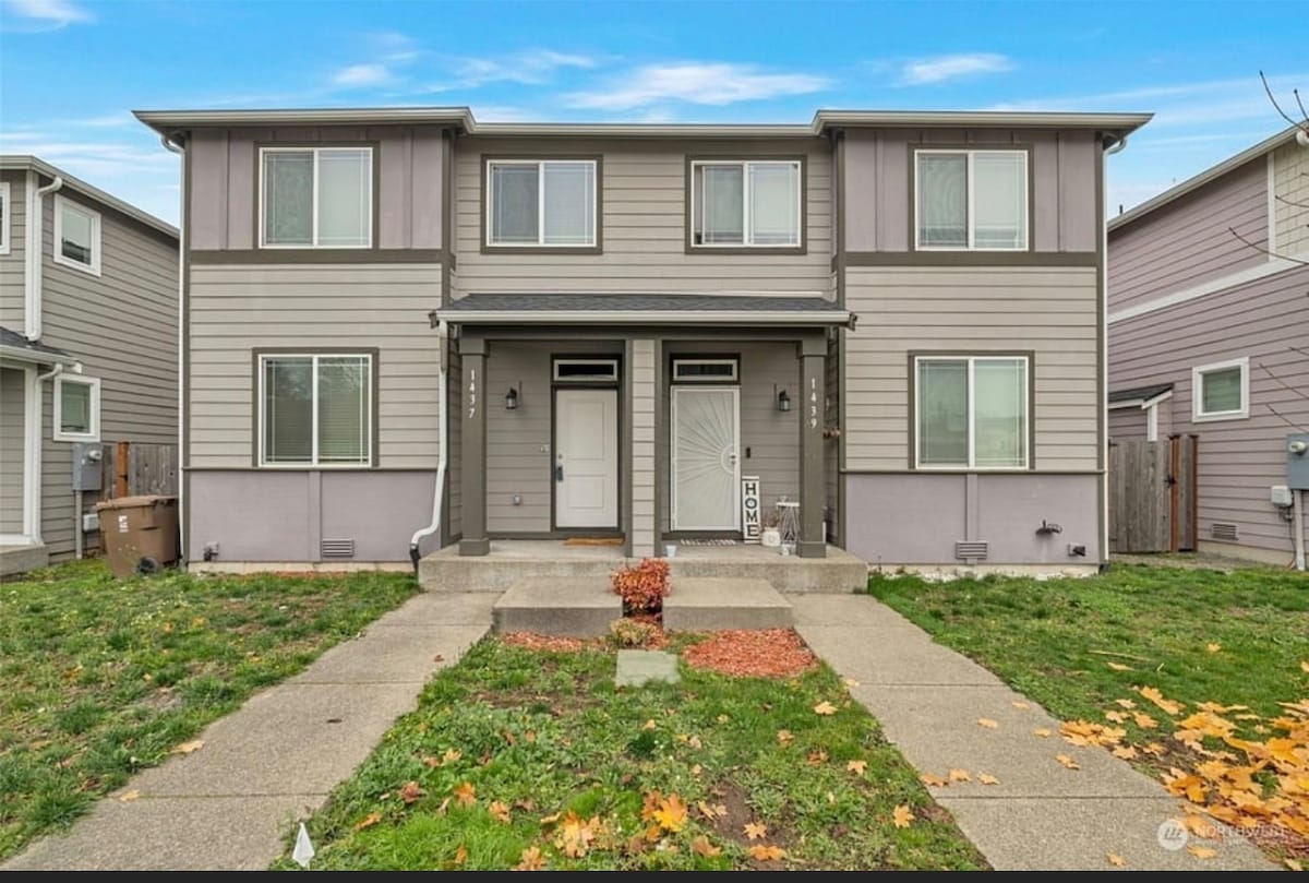 Willkommen in diesem 2 Story 1200s/f 3BR Townhome. Bewohnt auf 1 Seite beim Eigentümer/Gastgeber. Du kannst bis zu 7 Personen mit der Couch schlafen. Voll eingezäunter Hinterhof, offener Parkplatz, 3 Autos oder Wohnmobil möglich. Schöne Gegend, alles in der Nähe von allem. 15 Meilen südlich des Flughafens Seatac. Hoher Standard an Sauberkeit, Einrichtung ist schön und sieht gut aus. Komfortabel, entspannt zu Hause. Fühl dich verwöhnt! Bring dein Gepäck mit und mach es dir gemütlich WLAN , Antennen-TV-Service. Ungefähr ein Dutzend Kanäle **Kleine Hochzeiten erlaubt - 50 $ mehr - 20 Personen max.