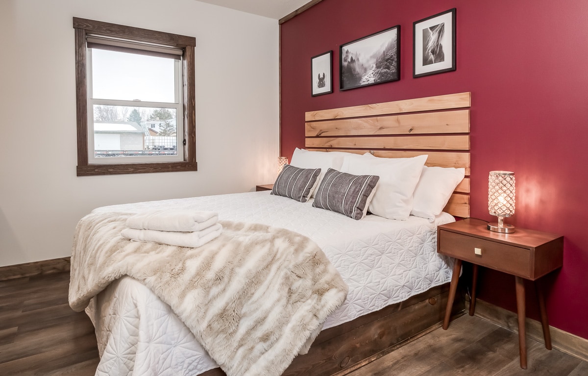 Eine geräumige Suite mit zwei Kingsize-Betten in unserem Boutique-Hotel Port, perfekt für Mädelsausflüge. Genieße eine erstklassige Lage in der Innenstadt von Prescott mit eigenem Bad, elektrischem Kamin, Kaffeebar, Minikühlschrank, Mikrowelle, speziellem Arbeitsbereich und entspannten Loungesitzen – nur wenige Schritte von Einkaufsmöglichkeiten, Restaurants, Nachtleben und dem St. Croix River entfernt.