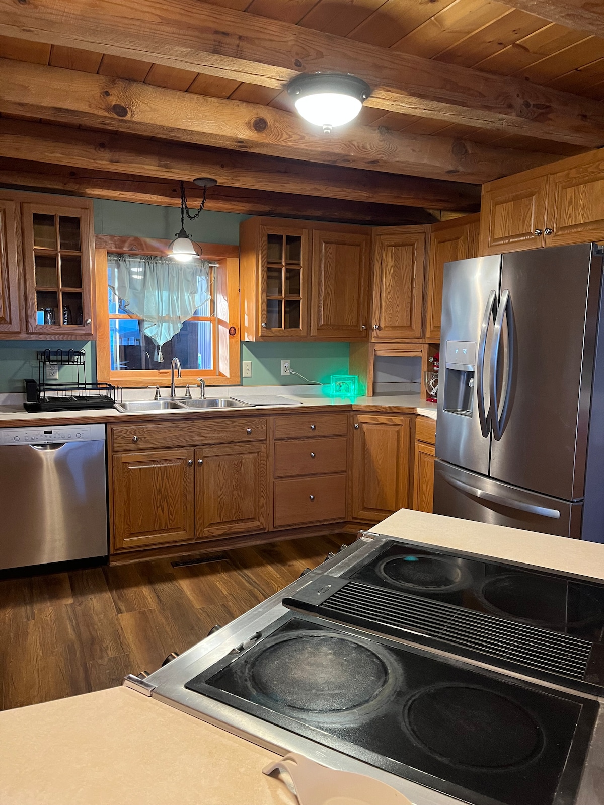 Fresh country air. Beautiful view. Cable TV. Wi-Fi. Hot Tub (chemical free). Spacious furnished kitchen. Sectional sofa with recliners. Recliner. Electric fireplace. Outdoor firepit (bring your own wood). Washer and dryer. 12 inch step into tub/shower. This beautiful getaway is attached to the family business shop. We do load trailers occasionally and will be working in shop at times. Minimal noise. 30 Minutes from Eau Claire. We are only 25 minutes from two lakes with beaches.