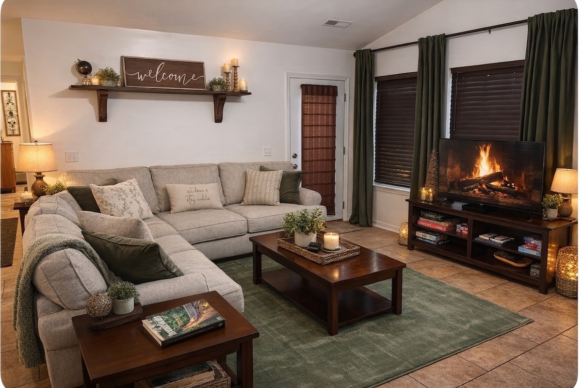 The Cozy Modern Alpine Cabin is a retreat in the Smoky’s. Whether you're soaking in the private hot tub under the stars, watching your favorite movie on the 4K projector, or relaxing around the warm campfire—this is where nature meets luxury. Just a short scenic drive from Gatlinburg, Pigeon Forge, and Dollywood, you're perfectly positioned for adventure, yet worlds away from the hustle.