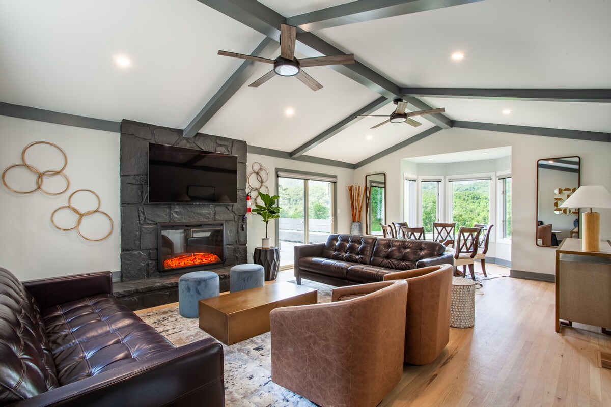 Auf einem privaten 36 Hektar großen Hügel (der höchste außerhalb des Parks!), Belltop ist der perfekte Rückzugsort. Genieße unsere Renovierungsarbeiten für 2024! Ich habe StayBham, Kreative von inspirierten Rückzugsorten bei dir. Dampf im geräumigen Dampfbad. Genieße Yoga bei Sonnenaufgang auf dem Dachgeschoß. Genieße den Whirlpool mit Blick auf das Tal. Spiele Vintage-Videospiele. Hör dir eine Platte an oder spiele Klavier. Beobachte den Sonnenuntergang, während du am Feuer sitzt. Minuten vom Eingang des Wears Valley zu den Smoky Mountains.