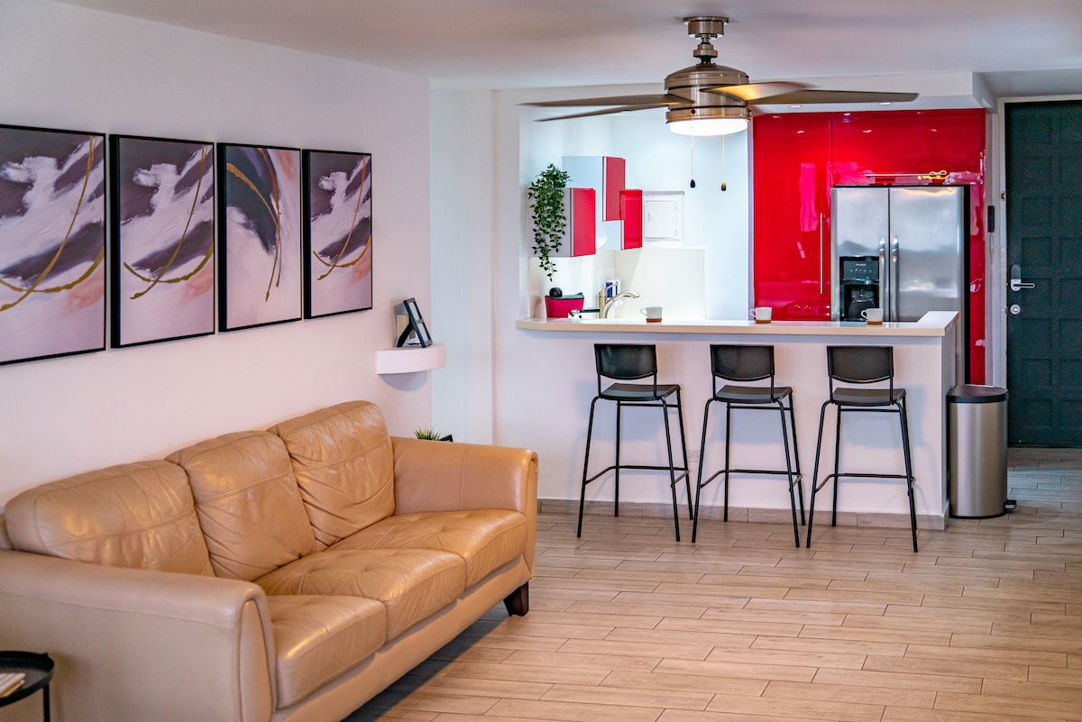 Tritt zum Strand! Genieße die Schönheit von Puerto Rico während deines Aufenthalts in diesem schönen Aufenthalt. Diese Wohnung liegt im Herzen von Isla Verde. Die besten Restaurants, Strände und Bars sind alle nur wenige Gehminuten von deiner nächsten Ferienwohnung entfernt. Genieße die voll ausgestattete Küche und genieße Abendessen oder Frühstück und beobachte das blaue Wasser unseres Strandes von der Tür der Wohnung aus. 5 Minuten vom Flughafen entfernt, und es ist wichtig zu wissen, dass du einige leichte Flugzeuge und einige Straßengeräusche hören wirst