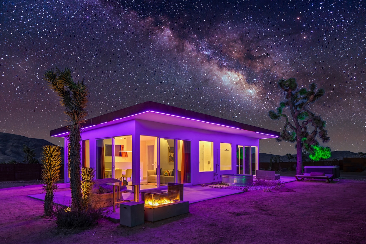 DARUM kommst du in die Wüste. Hoch über dem Yucca Valley erwartet dich The Edge, unser moderner und stilvoller Wüstenurlaubsort mit 2 Schlafzimmern und 2 Bädern. Es ist malerisch abgeschieden auf einem 2,5 Hektar großen Grundstück, aber nur wenige Minuten von der Stadt und dem Joshua Tree National Park entfernt. Erkunde die lokalen Sehenswürdigkeiten, wandere von deinem eigenen Garten aus oder entspanne dich den ganzen Tag in unserem luxuriösen Whirlpool, während du DIE BESTE AUSSICHT in der High Desert bewunderst! ✔ 2 Schlafzimmer mit Kingsize-Betten ✔ Voll ausgestattete Küche ✔Spa ✔Feuerstelle ✔Hammocks ✔Grill ✔ High-Speed-WLAN Mehr dazu weiter unten!
