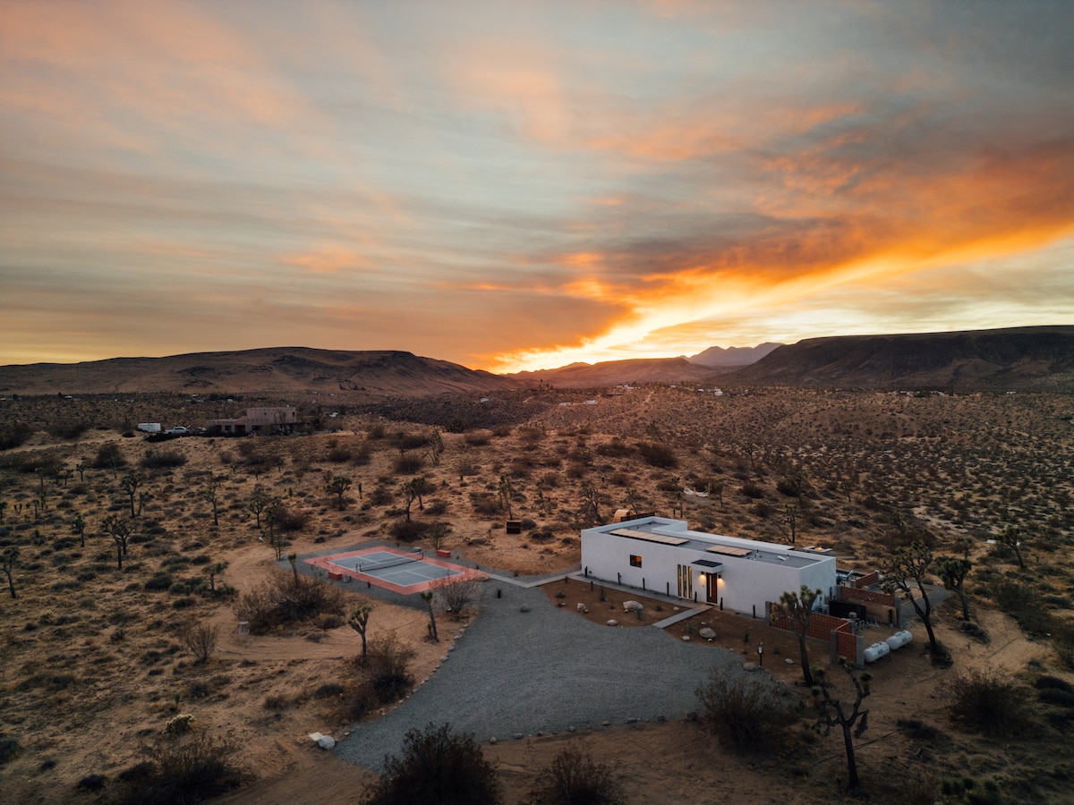 Tauche ein in dieses neu erbaute luxuriöse Haus mit 3 Schlafzimmern und 2 Badezimmern, das über große Fenster verfügt, die die atemberaubenden Landschaften enthüllen, einen funkelnden beheizten Pool und ein Spa für sternenbeleuchtete Bäder sowie einen eigenen Fitnessraum bietet. Entspanne dich unter endlosem Himmel auf 2 weitläufigen Hektar in deiner eigenen privaten Oase, perfekt für Sternenbeobachtungen und Zusammenkünfte auf der Terrasse. Wache mit atemberaubenden Sonnenaufgängen auf, erkunde die jenseitigen Wunder von Joshua Tree und kehre dann für ein erfrischendes Bad in deine Wüstenoase zurück.
