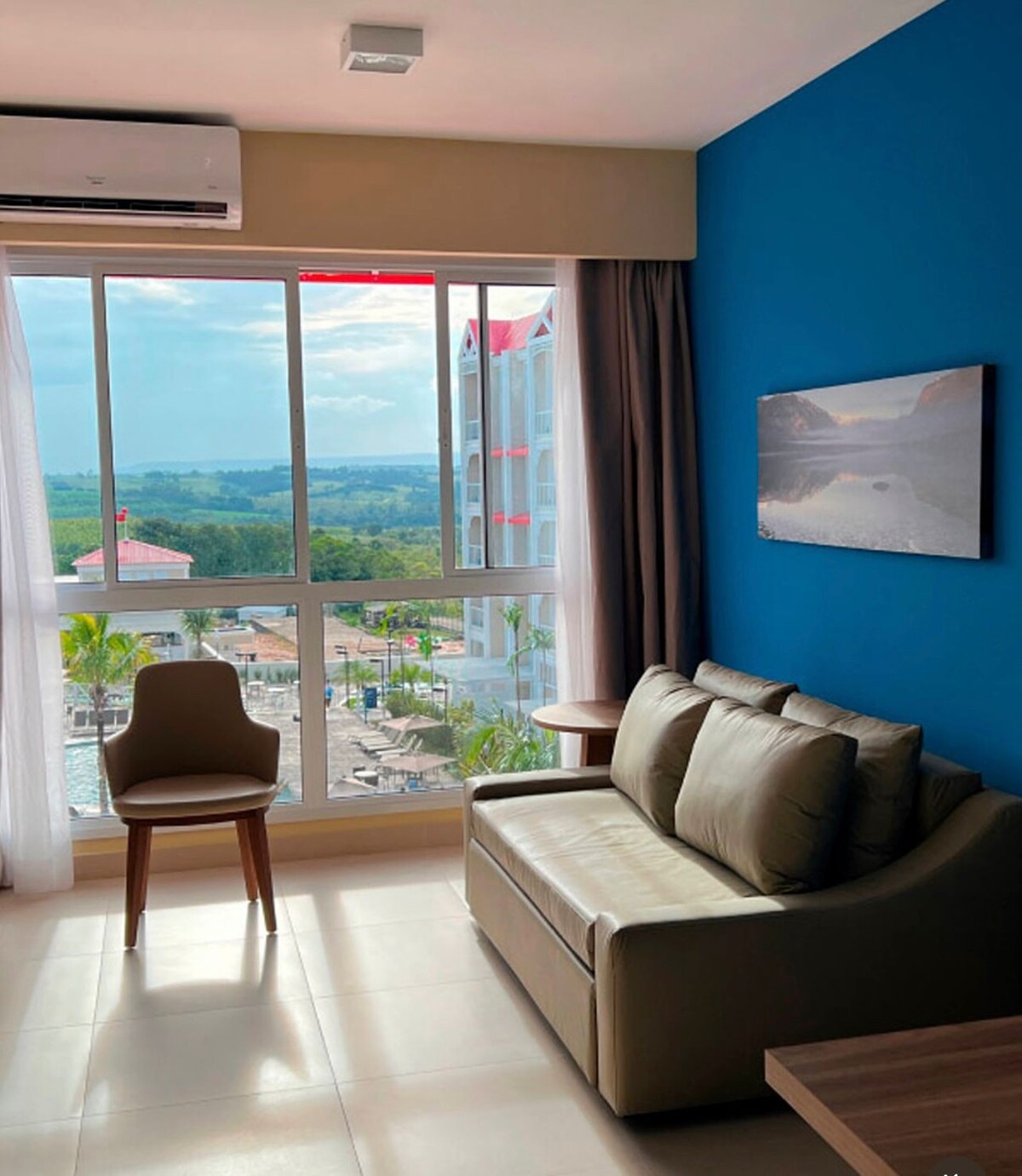 Sie haben sicher schon einmal von einem Resort am Strand gehört, aber was ist mit einem Resort im Park? Mit dieser Idee wurde das São Pedro Thermas Resort eröffnet, das an den Thermas Water Park angeschlossen ist, einer der 10 besten Wasserparks in Brasilien, in der Gemeinde São Pedro, im Landesinneren von São Paulo. Mit einem Schwerpunkt auf Familienfreundlichkeit hofft das Resort, Gäste mit geräumigen Zimmern anzuziehen, die eher wie Mini-Apartments aussehen, mit Wohnzimmer, Küchenzeile, Schlafzimmer und Bad.