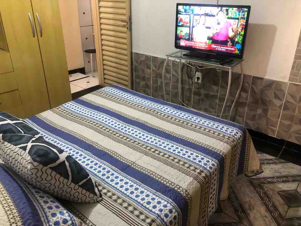 Unsere stilvolle Unterkunft ist perfekt für kurze bis lange Aufenthalte, mit einem L-förmigen Schreibtisch, Minibar und WLAN. Sie verfügt über eine Klimaanlage von 22.000 BTU, ein Super-King-Orthopur-Bett + ein zusätzliches Einzelbett, Porzellan-Finish und einen Smart-TV mit Netflix-Unterstützung. Das Badezimmer ist geräumig und modern und steht ausschließlich dem Gast zur Verfügung. Es gibt genügend Platz im Freien, wo du die Küche nutzen kannst, die mit den Gastgebern geteilt wird. Die Nachbarschaft ist sicher in einer gehobenen Gegend, in der Nähe des Jaú Serve Marktes.
