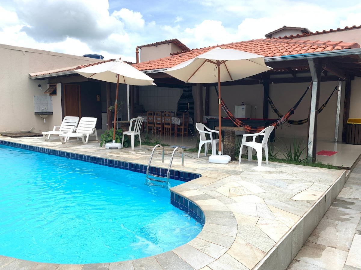 Neues Haus, gut gelegen und gut ausgestattet - KLIMAANLAGE in den vier Schlafzimmern - Kapazität für 15 Personen, einschließlich Kinder - 4 Schlafzimmer, 4 Doppelbetten und 1 Queensize-Bett, zwei davon sind Suiten -3 Einzelmatratzen - 1 Etagenbett im Schlafzimmer im Erdgeschoss -1 Gemeinschaftstoilette im Erdgeschoss, 1 Toilette im Freizeitbereich -Sala-Fernseher - Ausgestattete Küche, Elektroherd und Filter, Herd, Kühlschrank, Mixer, Mikrowelle, etc... - Erholungsbereich, 24-STUNDEN ELEKTRISCH BEHEIZTER POOL mit Beleuchtung, TOP-Barbecue mit Grill. -Garagem -WLAN