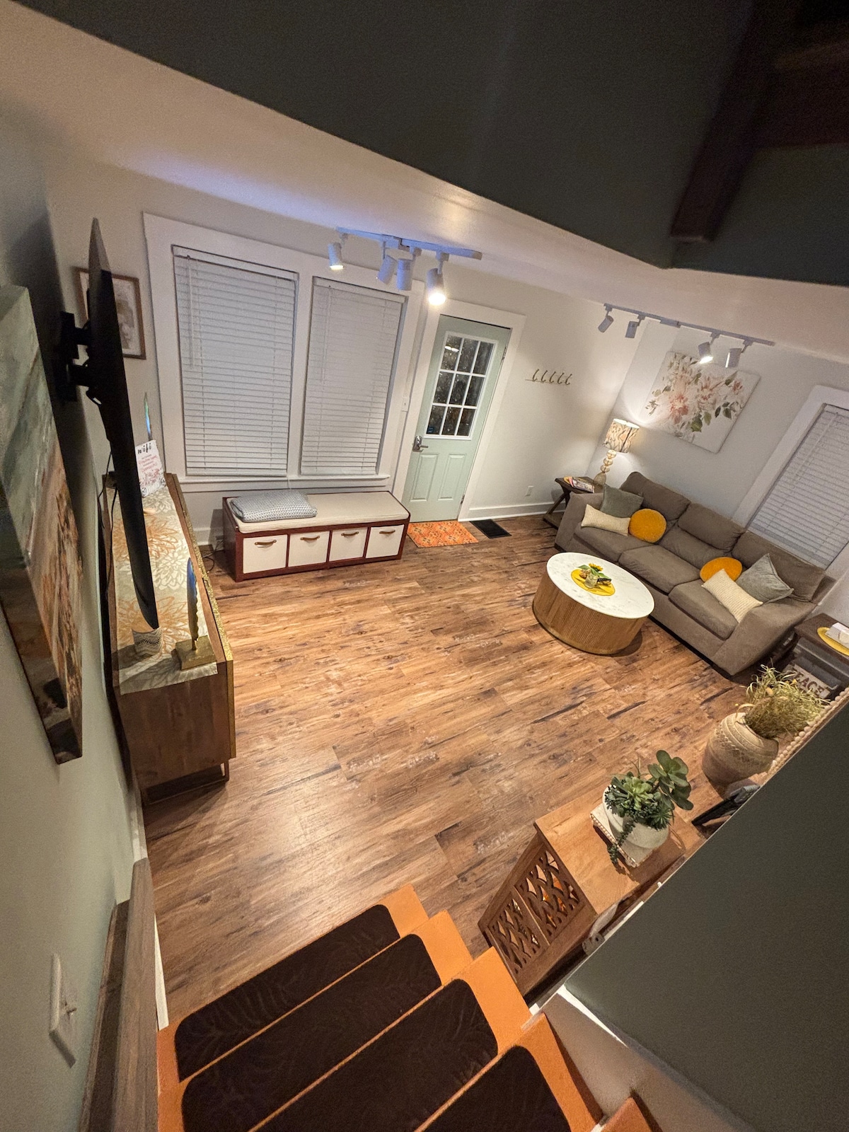 Renoviertes Ein-Zimmer-Schulhaus. Geräumiger, offener Raum. Der Musikraum wurde in ein Schlafzimmer umgewandelt. Küchenbereich im europäischen Stil. Hohe Decken mit Ventilatoren und Klimaanlage. Propankamin. Parkplätze abseits der Straße. High-Speed-Internet und 65 Zoll Roku-Fernseher mit Surround-Sound. Drei-Jahres-geschirmte Veranda. Außerdem haben wir kürzlich eine Richtlinie FÜR KEINE REINIGUNGSGEBÜHREN eingeführt, um „Danke“ zu sagen, dass du unsere Unterkunft und unsere Richtlinien eingehalten hast.