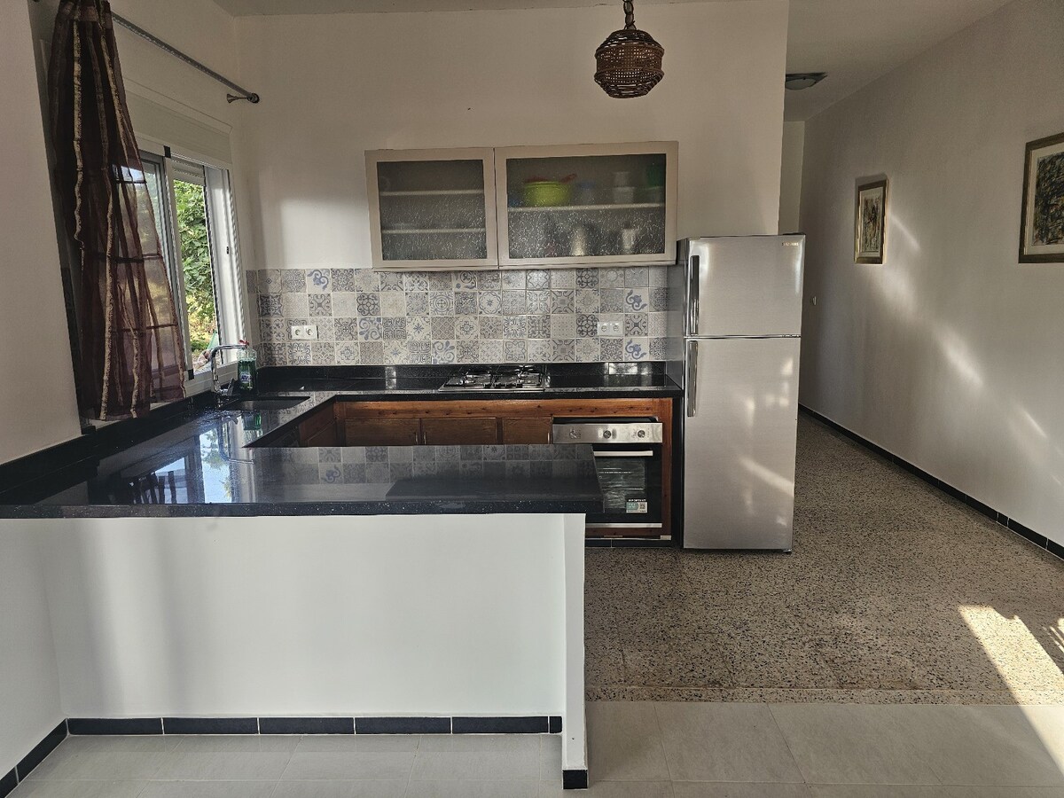 Luxusvilla mit großem, privatem, selbstreinigendem Pool, 5 km von Cabo Negro und 3 km vom Flughafen Tétouan und McDonald's entfernt. Die Unterkunft verfügt über 2 Schlafzimmer und 2 Wohnzimmer (eines mit 4 Schlafsofas) für 7 Erwachsene, eine voll ausgestattete Küche, moderne Badezimmer, einen Garten mit Beleuchtung, die sich bei Sonnenuntergang einschaltet, einen Grillbereich und Parkplätze für 3 Fahrzeuge. Reinigung und Instandhaltung garantiert. Keine Partys erlaubt, nur respektvolle Gäste. Mit automatischer Klimaanlage