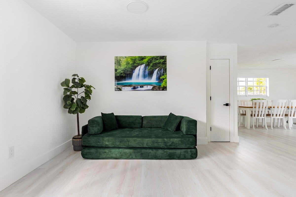 Sea Turtle Vacation Homes welcomes you to experience the perfect vacation in this immaculately clean, recently remodeled modern 3-bedroom home. Ideally located just 15 minutes from Las Olas, the beach, FLL Airport, Hard Rock Casino, Hard Rock Stadium, and the Broward Convention Center. The home sleeps up to 8 guests and features a shared heated pool with the neighboring unit. Enjoy amenities including a fire pit circle, artificial turf, night lighting, outdoor games.