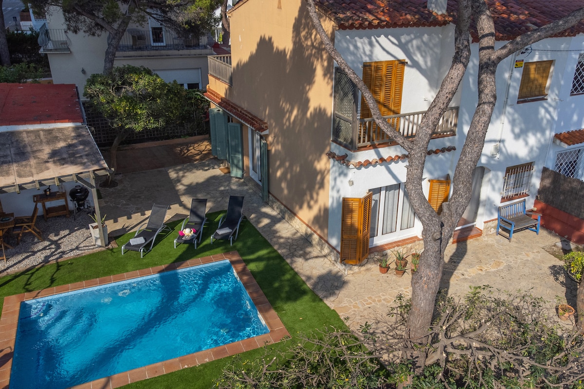 Entfliehe in unser fabelhaftes Strandhaus, einen vielseitigen, komfortablen Rückzugsort für Familien. Genieße Cala Sa Forcanera, mit Landzugang, der mit nur 15 Häusern geteilt wird, einem privaten Pool, nur wenige Gehminuten von Blanes' besten Bars und Restaurants entfernt. Das Haus verfügt über 4 Schlafzimmer, eine Küche, einen fantastischen Meerblick, 3 Badezimmer und üppige ökologische Annehmlichkeiten. Neben dem Botanischen Garten Marimurtra und 3 Gehminuten vom Strand Cala Bona entfernt. Perfekte Glückseligkeit am Strand! HAUSTIERFREUNDLICH!
