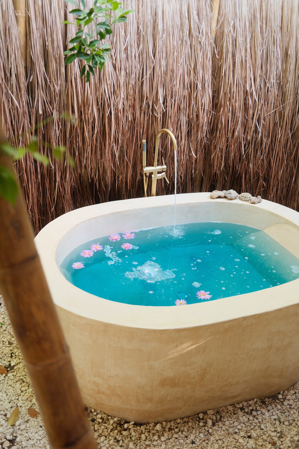 Genieße Wellness im BABEL Tulum mit einem privaten Whirlpool und einem atemberaubenden Blick auf die Oase. Tauche neben einem Turm mit Hammam, Pool und Gemeinschafts-Whirlpool in ultimative Entspannung und Schönheit ein. Genieße die Inneneinrichtung, die für dieses Projekt sorgfältig gestaltet wurde, wo sich die Farben von BABELS Chukumwänden mit jeder Stunde des Tages ändern. Wir bieten einen Service zum Beheizen des privaten Pools gegen einen Aufpreis von 18 US-Dollar pro Tag an. Dampfbad 15 USD pro Stunde, nicht im Preis enthalten.