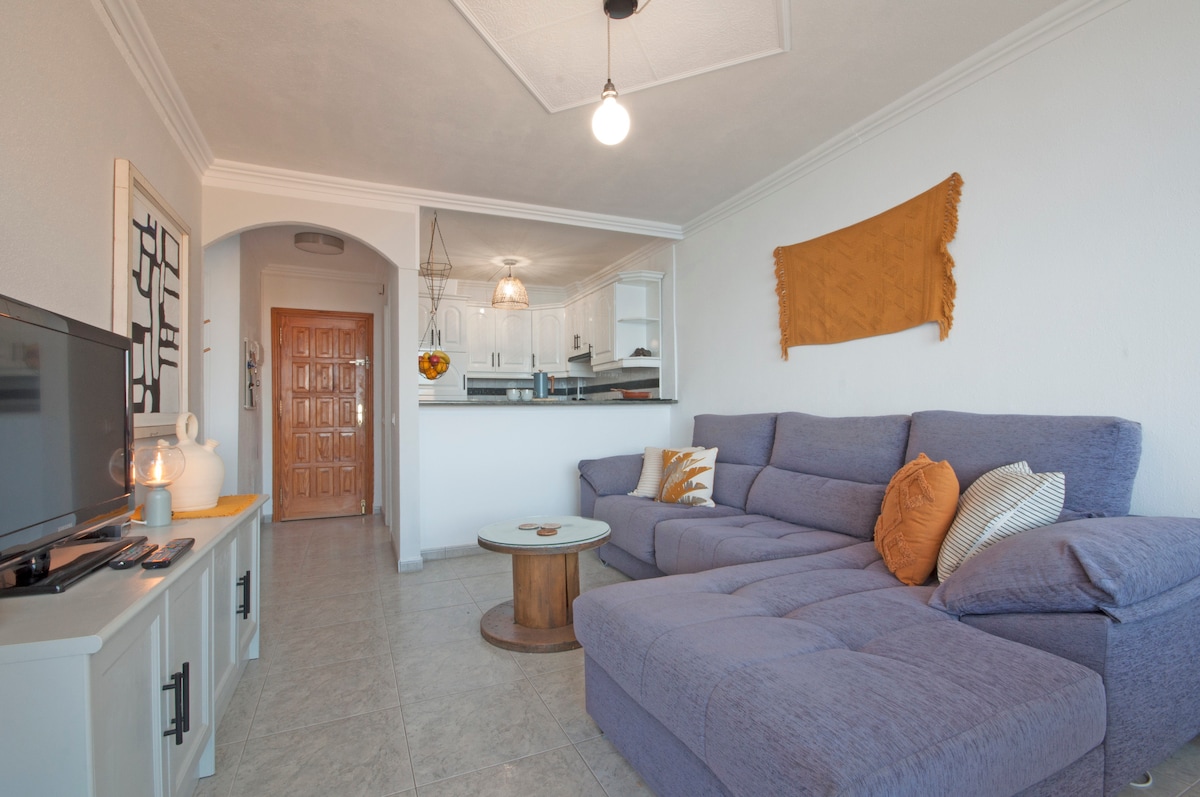 Eine gemütliche Wohnung mit Terrasse an einem ruhigen und friedlichen Ort, am Meer in der Nähe der schönen Bucht von Montaña Amarilla gelegen. Privater Parkplatz im Preis inbegriffen, schnelles WLAN (Fernarbeit möglich), SmartTV. In der Nähe des Supermarkts und der Bushaltestelle. Es gibt einen Pool mit Bar und einen Kinderpool. Wir bieten kostenloses Reisebett für Kinder, Hochstuhl und Spielzeug (z. B. Duplo). Gut ausgestattete Wohnung.