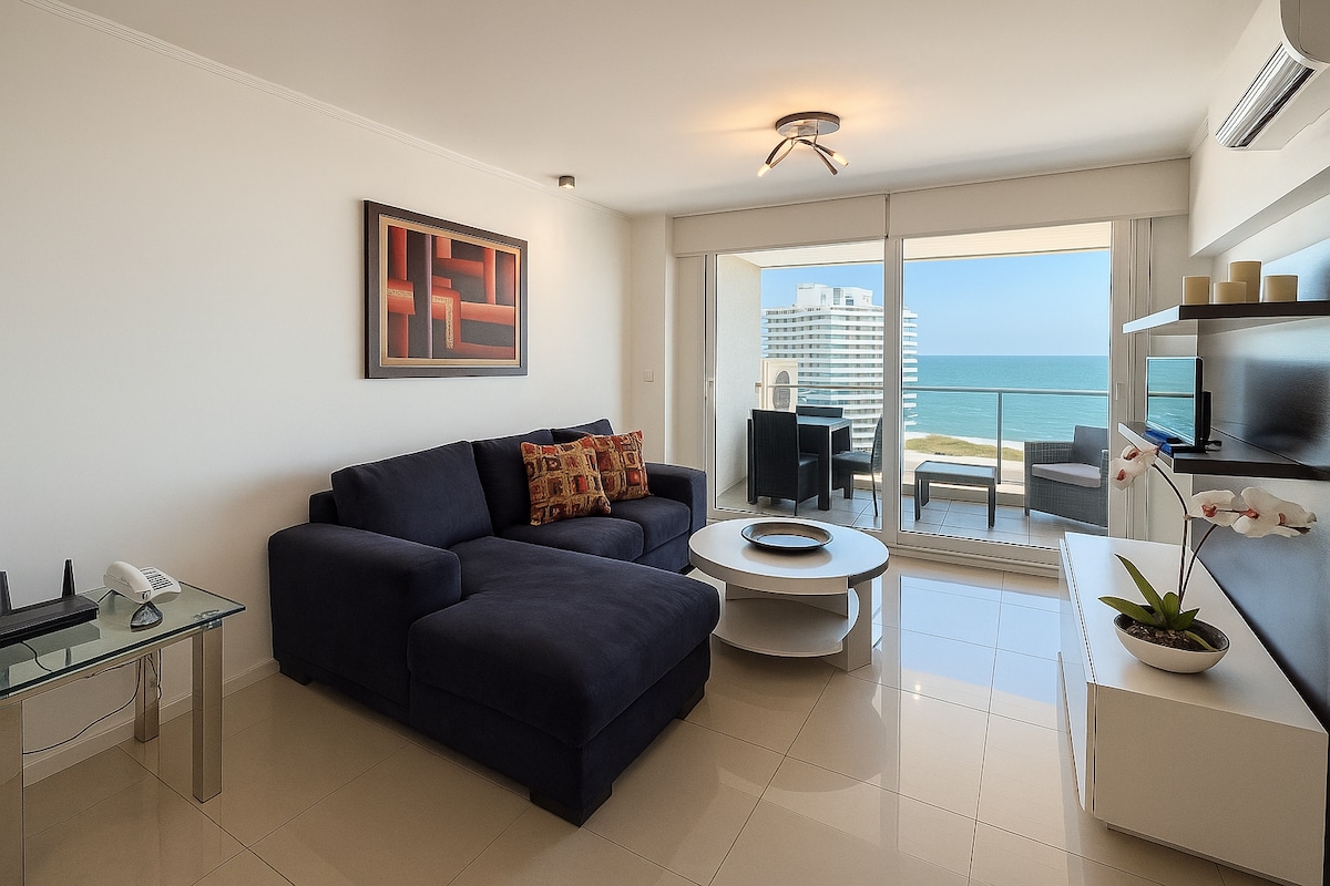Moderno apartamento para 2 personas totalmente equipado con espectacular vista al mar y la península con 2 balcones, situado a cuadras del centro y de las playas mansa & brava. Incluye el uso de cochera propia, amenities de alta categoría como piscina interna y externa, sauna, gimnasio, business lounge y recepción atendida 24h. Ideal para relajarse y disfrutar de Punta del Este durante todo el año o combinar descanso y trabajo ya que dispone de una conexión rápida de internet (200 Mbps).