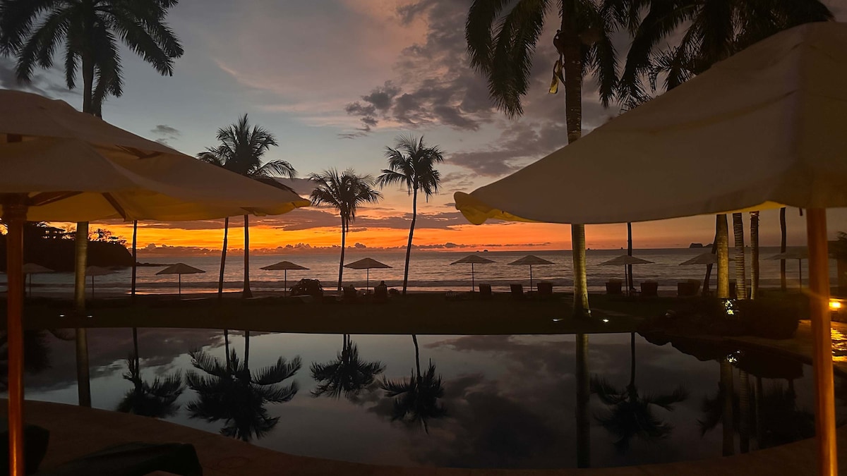 Reserva Condo is an incredible resort! Golf, Beautiful beach, Gym, Spa, Beachfront club with Restaurant! All the amenities, Bikes, Kayaks, Wifi at the beach, Stand Up Paddle boards! Our condo was just fully remodeled and is brand new! A/C thru out, Fast Wifi, 55 inch smart tv. Both bedrooms have king size beds, Ground floor with zero steps! Walk right in and walk right off the balcony to the pool with amazing sunset views! Our nightly rate is very great and you got to be inside Reserva Conchal!