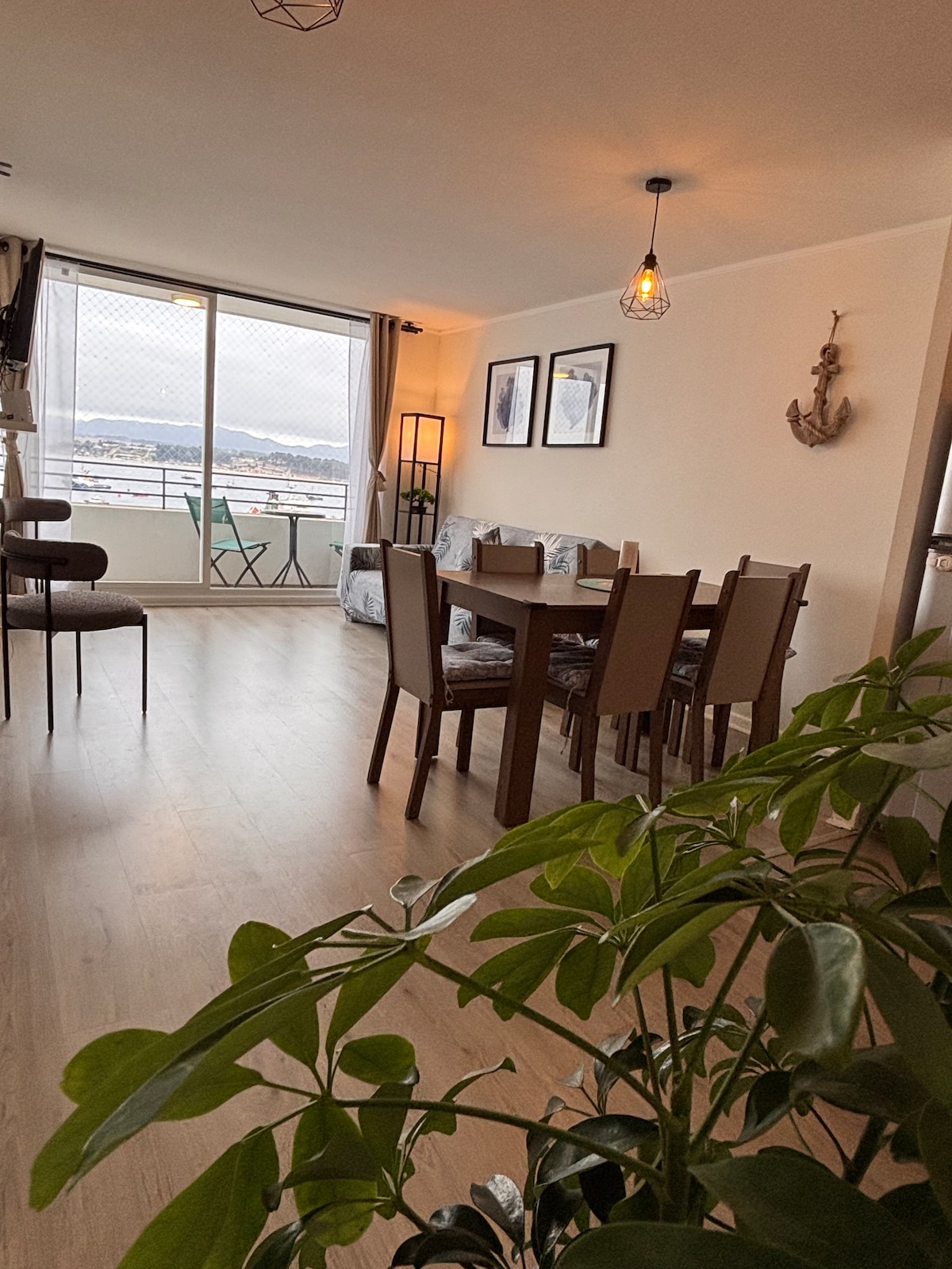Moderne Wohnung in einem Wohnhaus, komplett ausgestattet, um sich am Meer mit Blick auf die Bucht von Valparaíso zu entspannen. In der Nähe von Supermärkten, Restaurants und Einkaufszentren. Mit Zentralheizung und Glasfaser-Internet zum Arbeiten oder Entspannen.