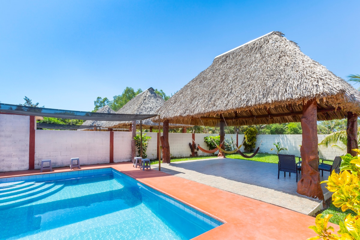 Bring die ganze Familie zu diesem fantastischen Ort mit vielen Gegenden, um Spaß zu haben. Geräumige Schlafzimmer mit eigenem Bad, Erholungsbereich im Freien mit Pool und Whirlpool, Churrasquera, Billardtisch, Familien-Erholungsräume. Alle Annehmlichkeiten, die du suchst, um mehrere Tage mit deiner Familie oder deinen Freunden an einem geräumigen Ort zu verbringen. Genieße die Aussicht auf die Vulkane und privaten Kanäle. Segle in Cayac auf dem Chiquimulilla-Kanal und beobachte den Sonnenuntergang auf dem Meer.