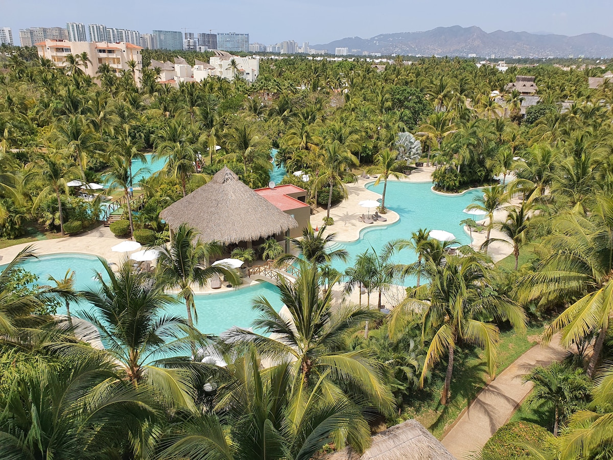 Wohnung in der besten Gegend von Acapulco Diamante, dem besten Turm der Wohnanlage, da sie direkt am Meer liegt und über Folgendes verfügt: luxuriöse Einrichtung, Pools, schneller Fluss, Rutsche, Strandclub, Spa, Privatstrand, Spielplatz für Erwachsene und Kinder, Fitnessraum, Schwimmbahn, Tennisplätze und Paddeltennis. Das Hotel liegt neben dem Einkaufszentrum LA ISLA (mit Transport von der Wohnung zum Clubhaus und Einkaufszentrum La Isla).