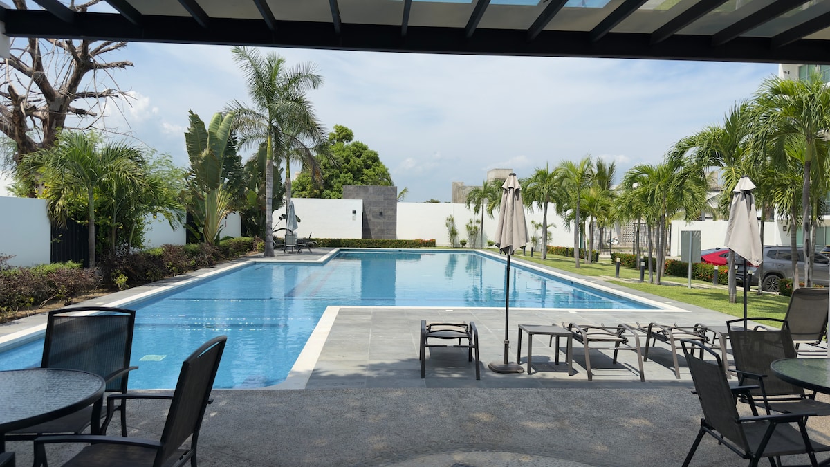 Erdgeschosswohnung mit allen Dienstleistungen und intakten Innenräumen nach OTIS/JOHN. Riesiger Pool mit einem tollen Garten, privatem Whirlpool, Sicherheit rund um die Uhr, 300 MB WLAN-Geschwindigkeit und einer ausgestatteten Küche. Dein privater Parkplatz ist nur wenige Schritte von der Tür entfernt. An der Hauptstraße in der Gegend Diamante, 7 Min. vom Flughafen und 1,2 km vom Strand entfernt. 2 Schlafzimmer und ein Wohnzimmer mit Mini-Splits, 2 Badezimmer, Bluetooth-Lautsprecher an der Decke, ein Klappschreibtisch im Wohnzimmer mit Blick auf den Garten.