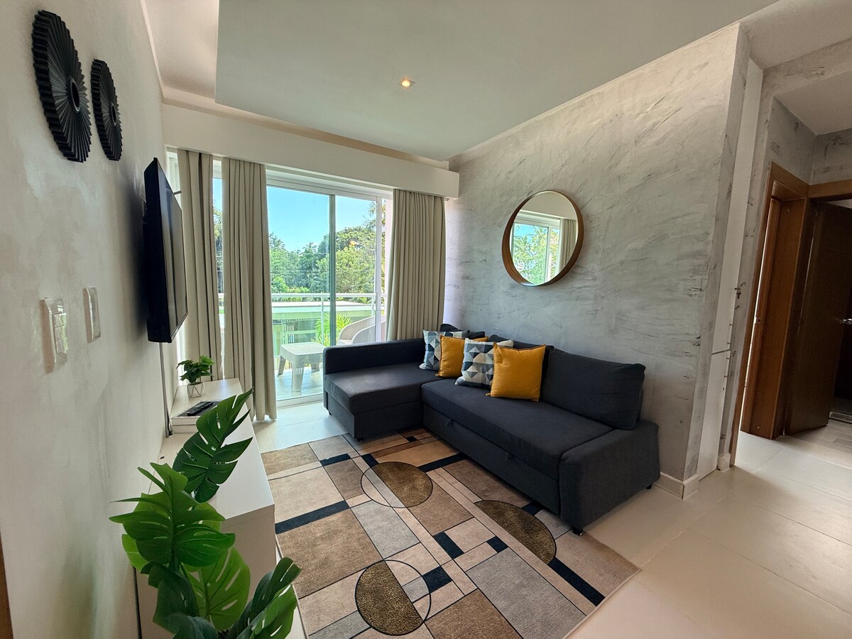 Geräumige Wohnung mit 1 Schlafzimmer und großem Wohnbereich im Inneren mit ausziehbarer Couch, Esstisch für 4 Personen und gut ausgestatteter Küche. Balkone mit Esstisch für 6 Personen, 2 Liegestühle und einem zweiten schattigen Balkon mit 2 Stühlen und kleinem Tisch. Schlafzimmer mit Kingsize-Bett, Verdunkelungsvorhängen und Deckenventilator. Die Wohnung befindet sich ganz oben, was sie sehr privat macht und einen 180-Grad-Blick auf den üppigen tropischen Garten und den Atlantik hat Großer Gemeinschaftspool und 24-Stunden-Sicherheitsdienst.