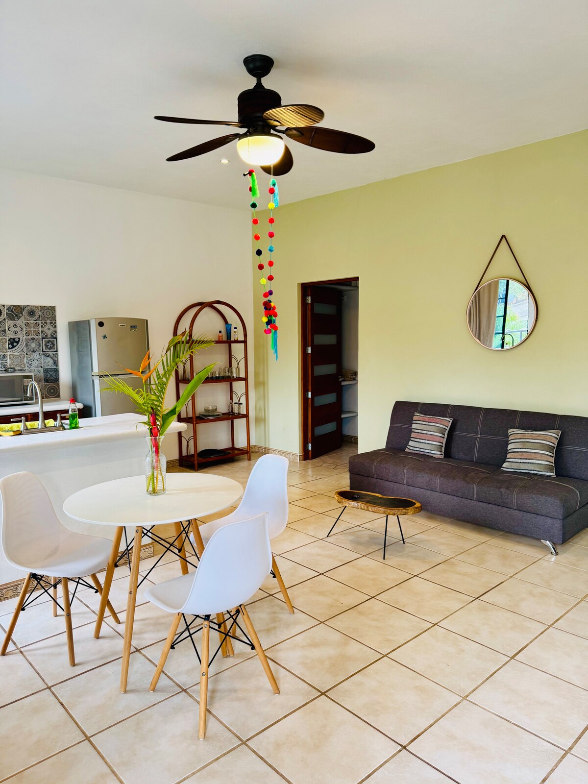 Eine ruhige Oase oberhalb des geschäftigen Stadtzentrums und nur ein paar Minuten zu allem. Gehe deinen privaten Eingang direkt an der Straße aus, gehe eine öffentliche Treppe hinunter und dann 100 Meter zur Hauptstraße des Cafés Sayulita. Restaurants, Bars, Hauptplatz, Tacos-Stände, Supermärkte, französische Bäckerei und Apotheke, alles nur einen Block entfernt. Gehe noch 2 Blocks zu Fuß und du bist am Hauptstrand. Wenn du in der Ferne lernen oder einfach nur in eine Oase fliehen möchtest, ist dies der perfekte Ort!
