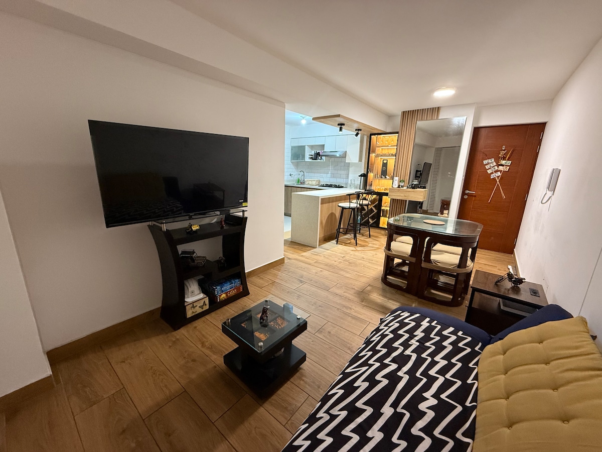 Wohnung im 4. Stock, ist eine ruhige Unterkunft, die sich am Boulevard zwischen der Calle Islas Ballestas und der Calle Zorritos befindet, Restaurantbereich, Minimarkt, Markt usw. Die Wohnung verfügt über drei Schlafzimmer, jedes mit eigenem Bad und in jedem von ihnen gibt es ein Doppelbett sowie in einem der Zimmer gibt es ein Etagenbett für zwei weitere Personen, insgesamt 8 Personen. Dieses Anwesen ist 5 Minuten entfernt. Ein perfekter Ort, um einen Urlaub in Ruhe und Entspannung zu verbringen.