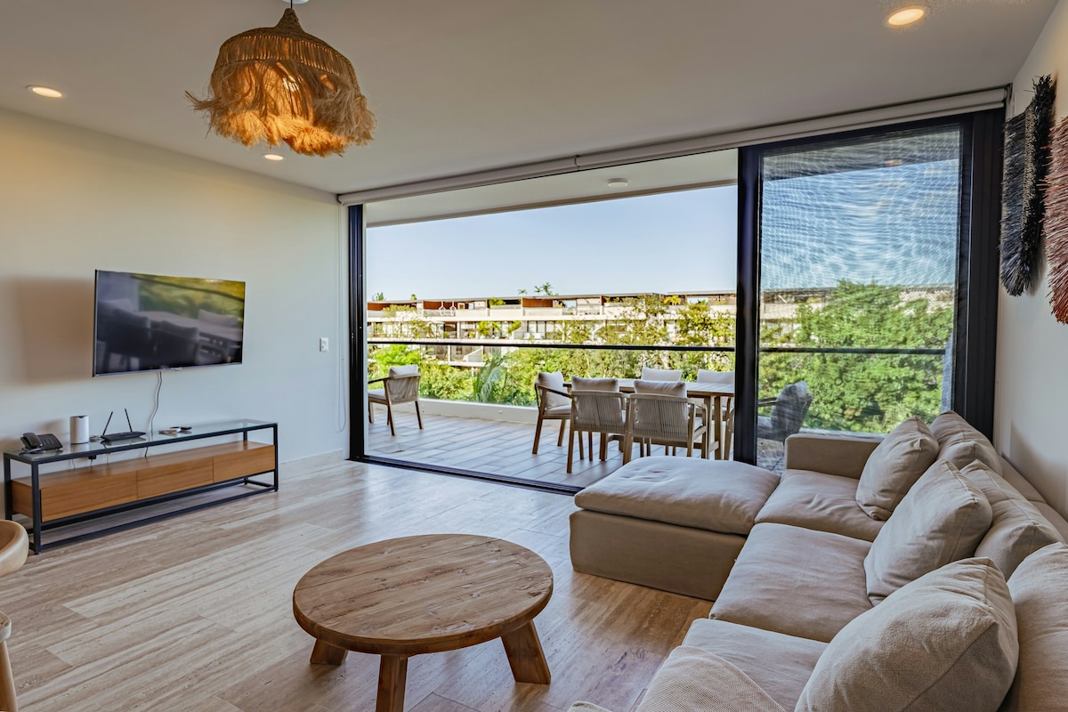 Hallo! Wir sind "HAPPY RENTALS RIVIERA MAYA" Genieße diese geräumige und moderne Wohnung in einer exklusiven Wohnanlage, ideal für 5 Personen. Umgeben von Grünflächen, einer privaten Terrasse und einer Aussicht, die dich jeden Tag anfeuern wird! Mit Resort-Annehmlichkeiten, ideal für jeden Geschmack, von Familien mit Kindern, Paaren und exklusiven Erwachsenenbereichen. Eine perfekte Kombination aus Luxus und Natur in der Karibik, diese Wohnung ist ideal für dich!