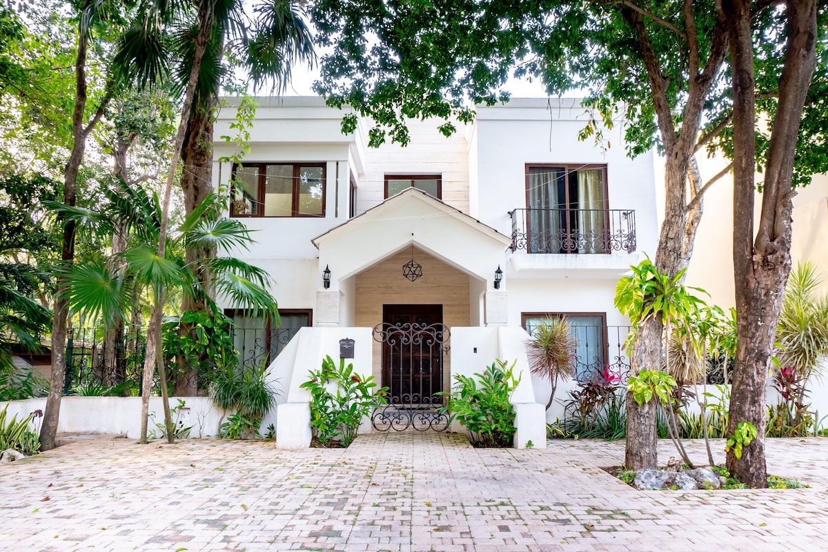 Ganze Wohnung mit vier Schlafzimmern und vier Bädern in einer Wohnanlage und privat. Nur wenige Schritte von Themenparks (Xcaret, Xenses, Xplor und Rio Secreto) entfernt. Dieses schöne Anwesen befindet sich nur 7 Minuten von Playa del Carmen, 3 Minuten von Bank, Krankenhaus und Einkaufszentrum und 5 Minuten Fahrt von verschiedenen Stränden entfernt. Dieses Haus ist von Bäumen und üppiger Vegetation umgeben, ideal für Menschen, die Privatsphäre, Exklusivität und Kontakt mit der Natur suchen.