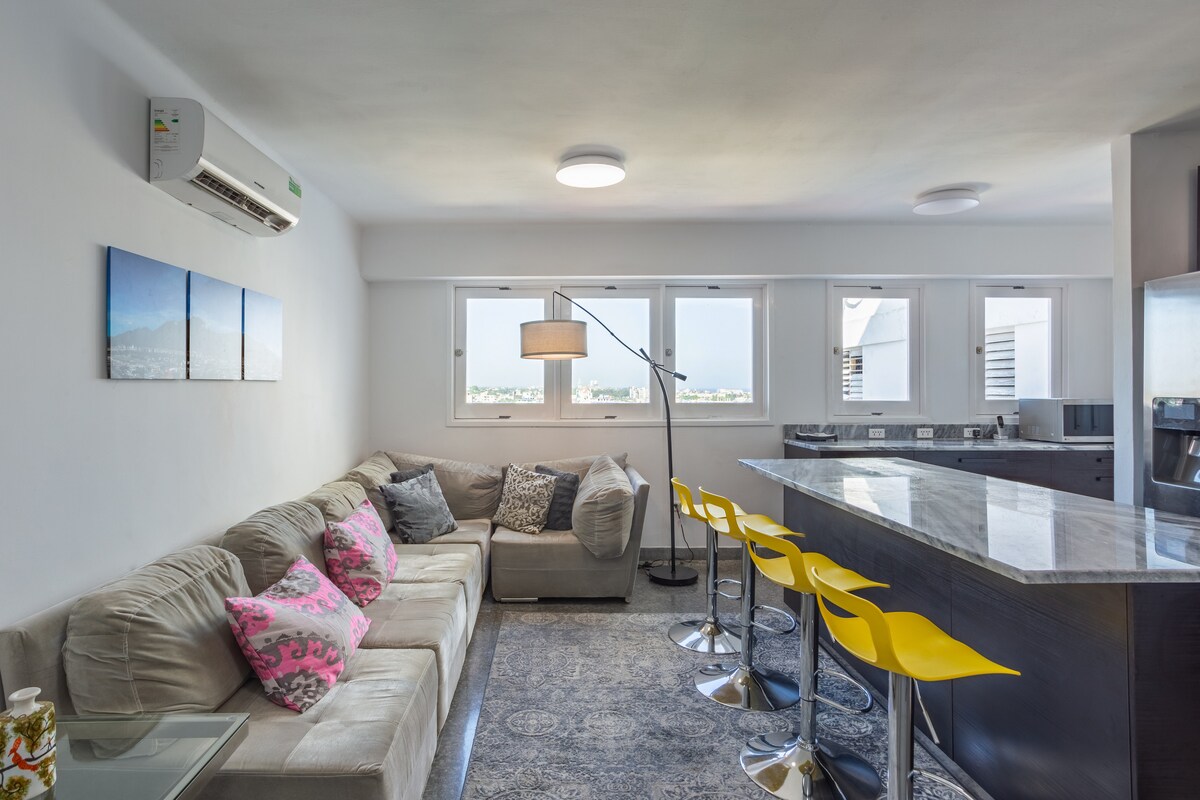 Unser schönes Loft befindet sich im obersten Stockwerk eines neoklassizistischen Gebäudes im Herzen des angesagten künstlerischen Vedado, nur wenige Schritte von trendigen Restaurants, Unterhaltungs-Nachtclubs, dem Hotel Nacional, Malecón und 5 Fahrminuten von Old Havana entfernt. Der 5 m hohe, offene Raum wurde um eine zeitgenössische Interpretation der kolonialen Architektur herum entworfen und verfügt über Zwischengeschossebenen, die sich von einer Seite der Wohnung zur anderen erstrecken, und große Dachterrassen mit Ess-/Loungebereichen mit atemberaubendem Blick auf Havanna.