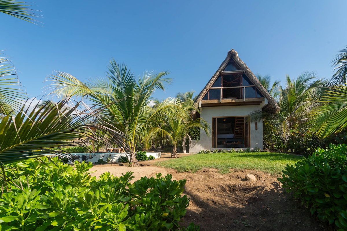 Despertar en este lugar es un sueño! La casa está a pie de playa de frente al mar para disfrutar los mejores atardeceres cada dia. Cuenta con dos niveles. el dormitorio está en la parte superior al igual que el espacio de trabajo (Starlink) y hamacas para descansar. El techo es una gran palapa. La casa tiene una pequeña alberca privada desde donde podrás disfrutar la mejor vista sobre playa Mermejita. La casa es muy abierta para poder disfrutar de la frescura del viento y de las mejores vistas.
