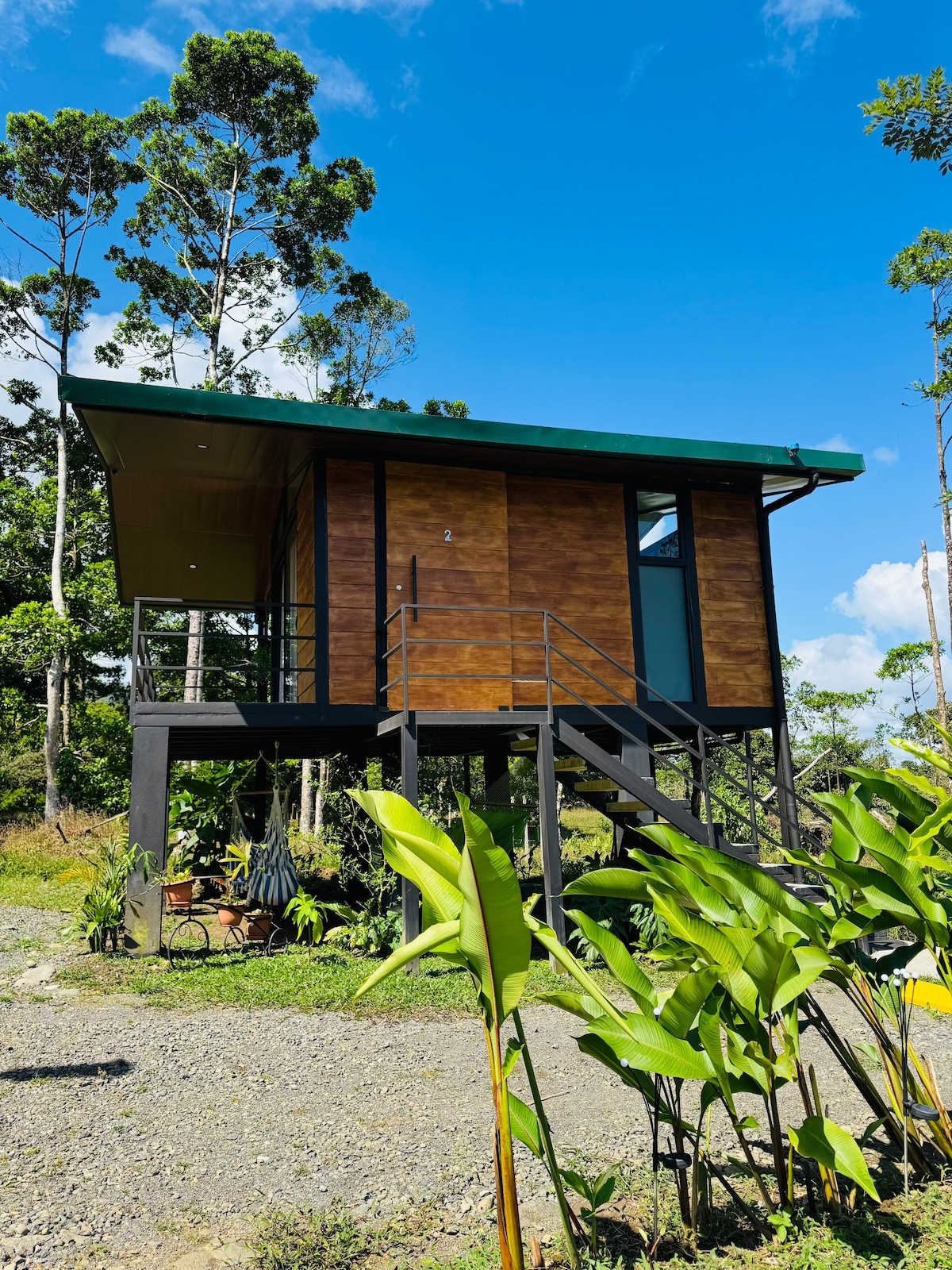 Es gibt nur wenige Orte wie diesen in Tortuguero. Entspannen Sie sich in diesem 2-stöckigen Haus, abseits des hektischen Treibens, nur 40 Meter vom Nationalpark entfernt. Fünf Minuten vom Pier, der Innenstadt und dem Strand entfernt. Im 1. Stock befindet sich eine Küche und ein spektakulärer offener Raum mit einem Sessel und einer Hängematte, perfekt zum Lesen oder für eine Massage mit der Dschungelbrise. Im 2. Stock befindet sich ein Zimmer mit einem Badezimmer und einem Balkon, um die Show von Affen und exotischen Vögeln zu sehen. Du wirst inmitten der Natur ruhig schlafen. Nachbarn der Casa Jaguar.