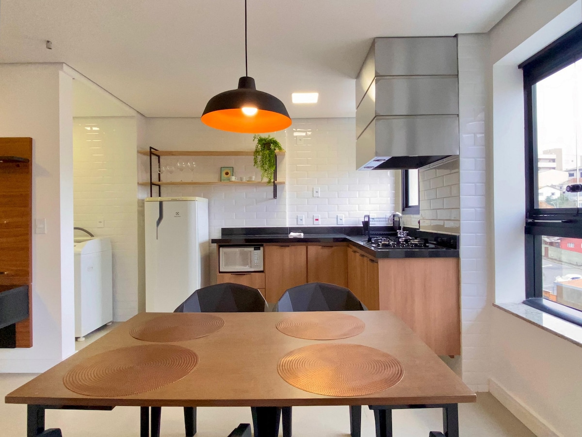 Neue und außergewöhnliche Wohnung zum Entspannen und Genießen des Besten von Poços. Gebäude an der Hauptstraße der Stadt, im zentralen Bereich, in der Nähe von allem, mit 24-Stunden-Concierge, Aufzug, Dach mit Fitnessraum, Spielzeugbibliothek, Spa/Whirlpool, Pub/Spielzimmer und Gourmet-Bereich; Wohnung komplett möbliert und ausgestattet, sehr funktional und komfortabel. Einfacher Selbst-Check-in, tolles Internet, voll ausgestattete Küche, Arbeitsbereich, Smart-TV, Ventilator und überdachter Garagenplatz. Wir stellen Handtücher, Bettwäsche zur Verfügung und sind bedeckt