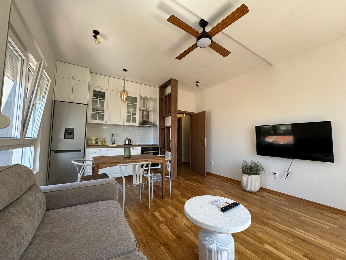 Fully furnished with modern interiors brand new apartment in the hearth of Budva! Within walking distance of day & nightlife options. Exclusive restaurants, cafes, supermarkets, night clubs, 4-minutes walking distance from waterfront promenade/beach. In the middle of all actions but just far enough where it won't affect your SLEEP. Enjoy beautiful views of the sea and the city of Budva from the private balcony. THIS IS THE PLACE TO STAY.
