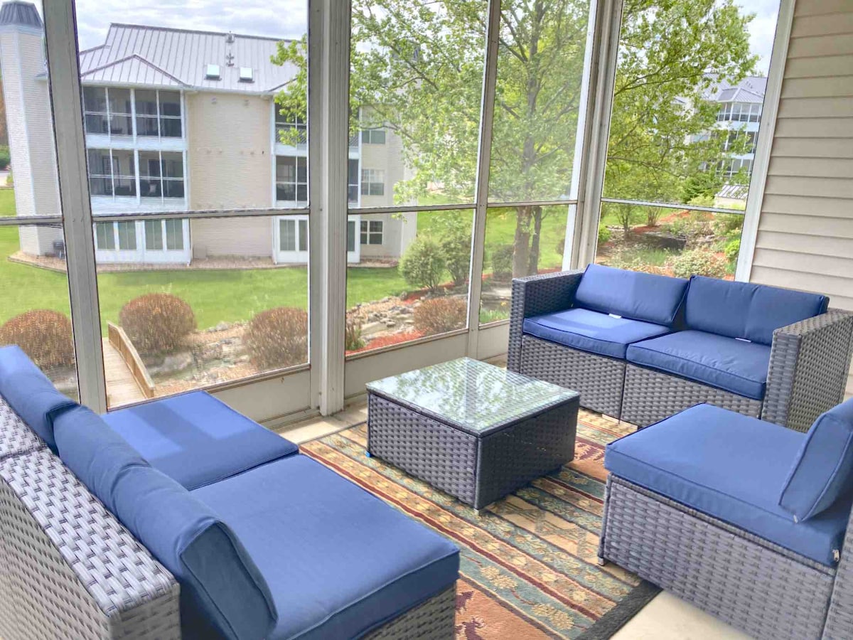 Saubere und komfortable 1B/1B-Wohnung in der geschlossenen Wohnanlage von Pointe Royale. Dies ist dein zweites Zuhause, das 4 Personen bequem mit einem Kingsize-Bett und einer Queensize-Auszugscouch beherbergt. Mit Blick auf das 18. Loch des Golfplatzes und direkt neben dem Clubhaus und allen Annehmlichkeiten in dieser schönen Gemeinde. Du bist nur wenige Minuten vom Table Rock Lake und allen Sehenswürdigkeiten von Branson entfernt. Inklusive Waschmaschine/Trockner, Kabel-TV und WLAN. Betrachte die Ozarks von der ebenerdigen Terrasse auf dem 18. Fairway!
