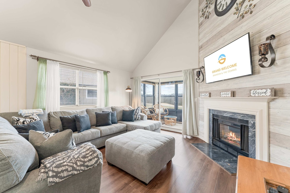 🛑 Tressa Says: "Stop Looking and Book It!" Your 5-star Branson escape! NO stairs. ☕ Your Unhurried Morning Ritual: Start your day with a coffee in the sunroom. Gaze out as the morning light hits the lake, finding a moment of mesmerizing peace. Amenities: • Coffee bar • Luxe king beds • 4 Smart Roku TVs • Fast WiFi • Arcade game Location Perfection! 🏞️ You get a spotless sanctuary with the perfect split: peace and quiet, yet only 12 minutes to Silver Dollar City and 8 minutes to the Strip.
