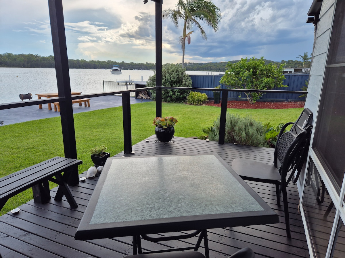 Vollständig unabhängiges Studio auf einem Grundstück direkt am Wasser, vom Haupthaus getrennt und mit uneingeschränktem Zugang zum Wasser. Dieses frisch renovierte Studio bietet ein Kingsize-Bett, ein eigenes Bad, ein Wohn-Esszimmer und eine Küchenzeile mit allem, was du für einen Kurzurlaub am Ufer des Lake Macquarie benötigst. Genieße die volle Nutzung der Lage am Wasser mit unseren Kajaks, Paddelbrettern, Angelausrüstung und Tiefwassersteg. Sundowner, faule Tage erwarten dich.